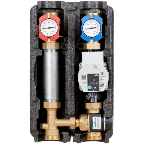 Grup de pompare tubra® - PGF-V, DN25, cu vana de amestec cu 3 cai termostatica, cu reglaj de temperatura 40-70°C, cu termoizolatie si suport de per...
